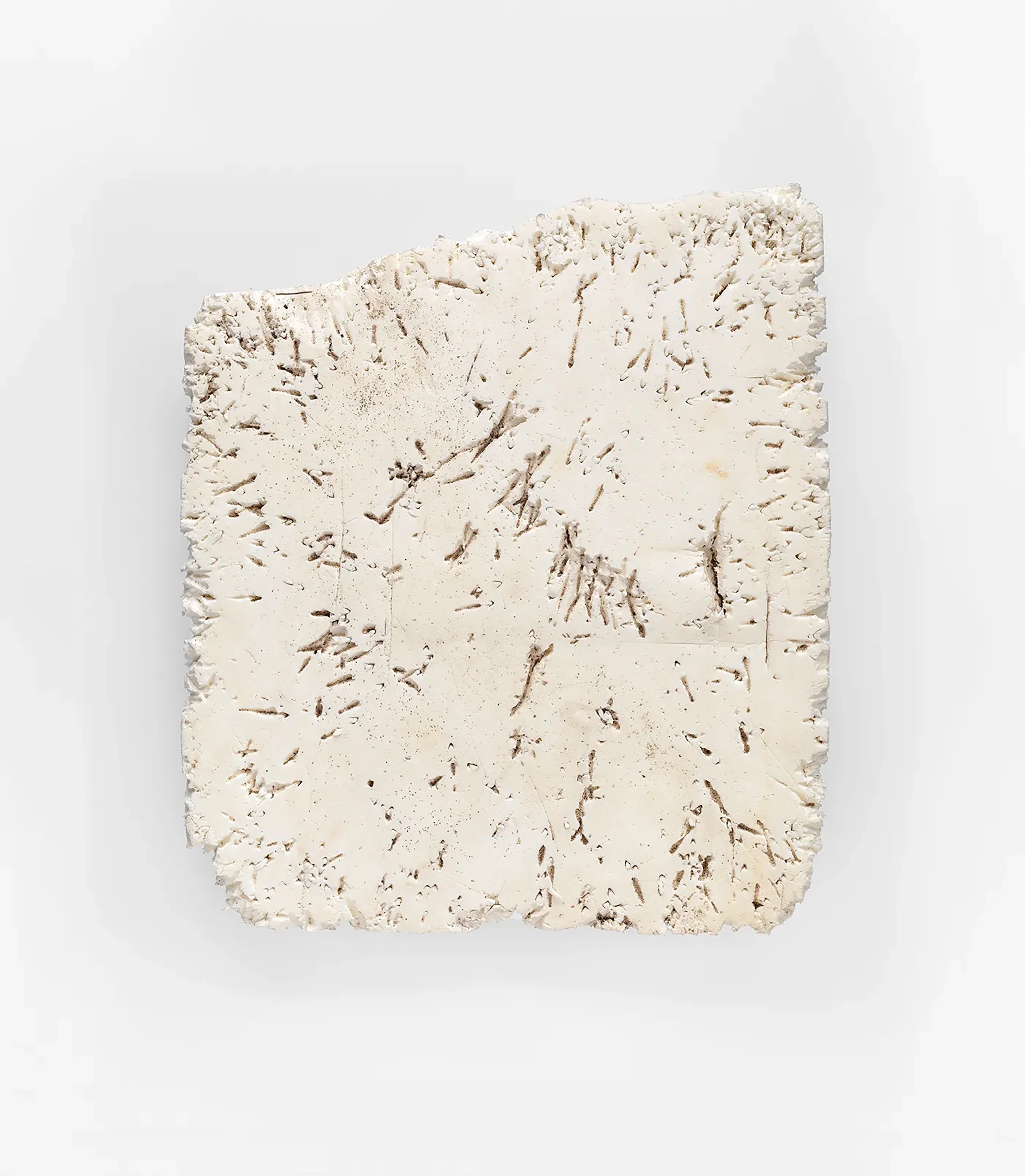At first glance, this large white object, entitled Pecked Foam, could be a slab of metamorphic rock. The texture and markings resembling the patina of white alabaster marble. But closer inspection reveals a featherlight battered piece of polyurethane, more commonly know as foam, perhaps a degraded piece of protective packaging that has floated in on the tide at Porth Ceiriad on the Llŷn Peninsula, North Wales.