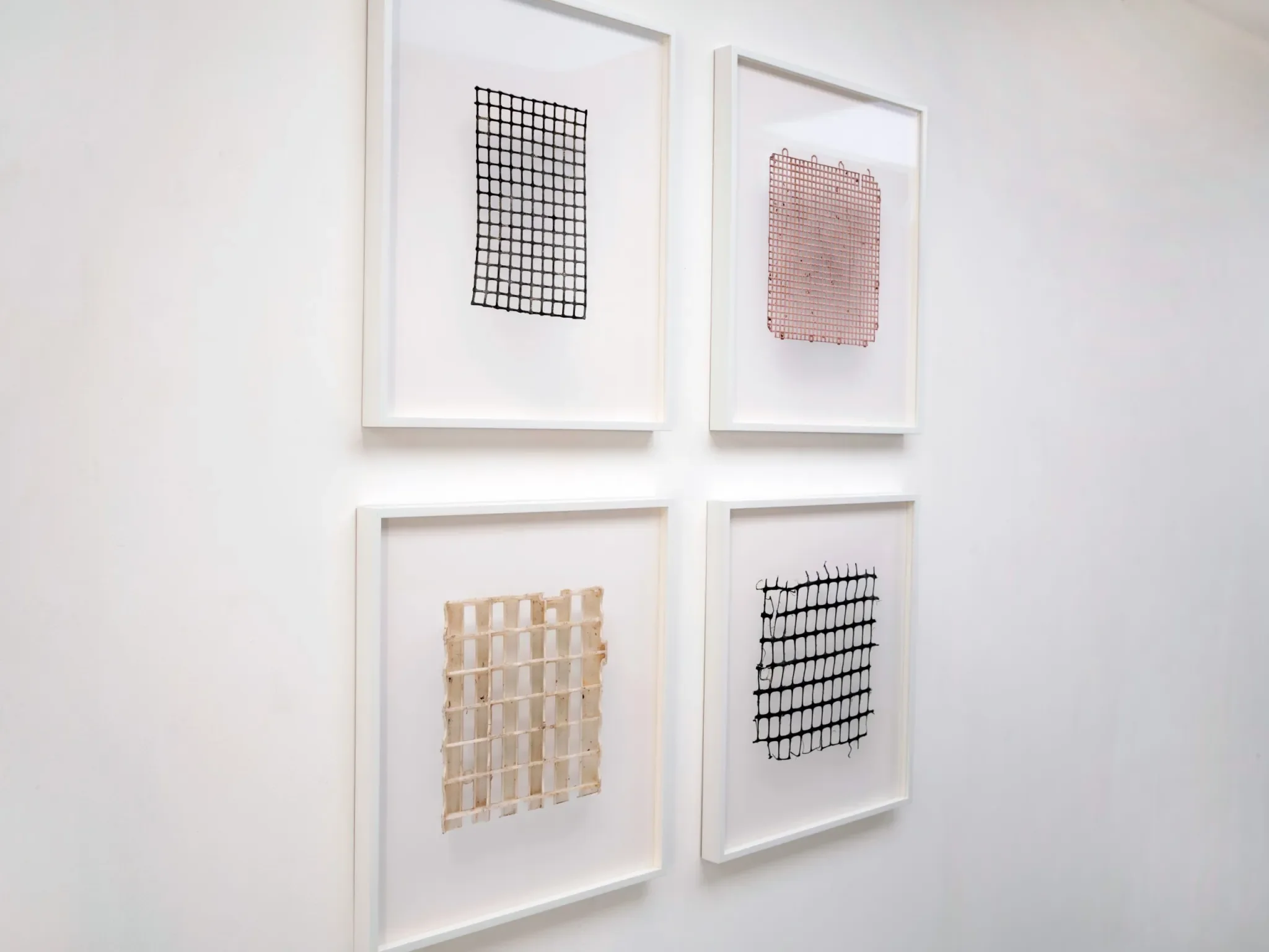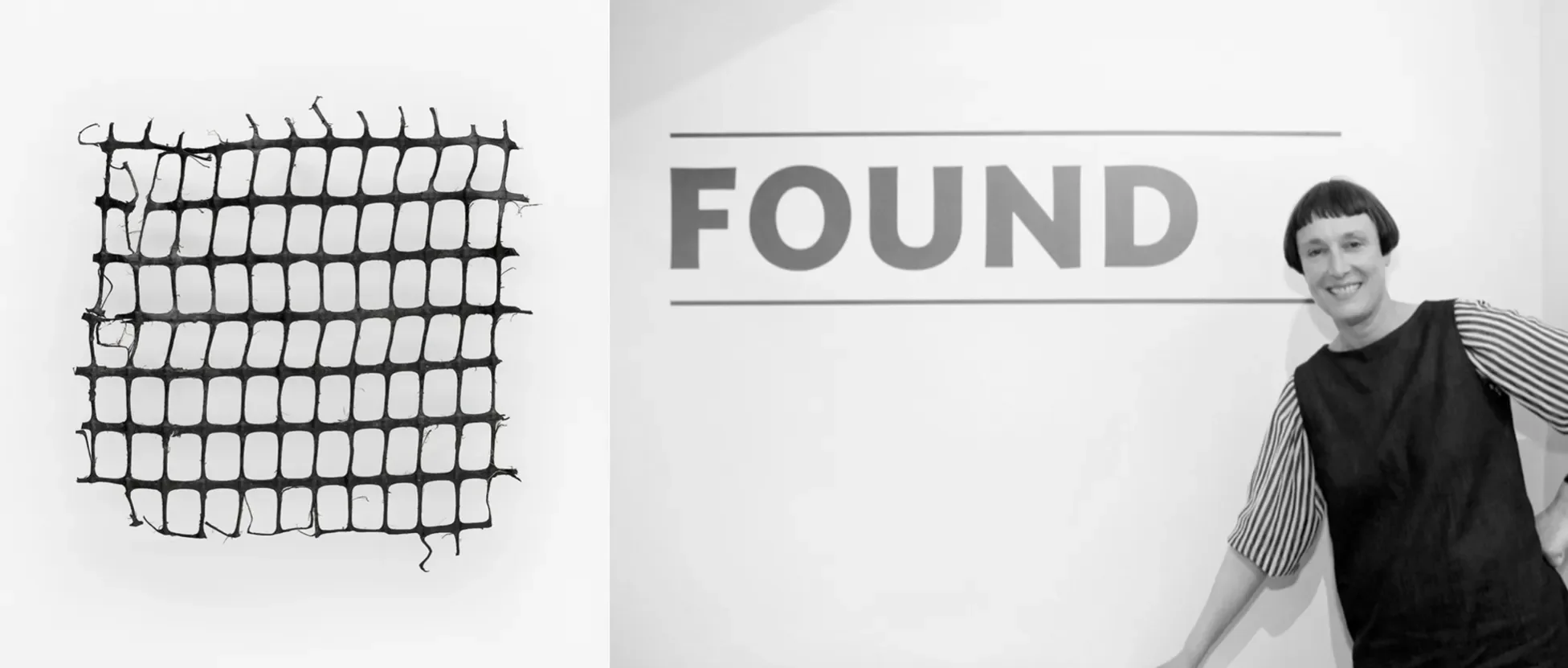 For Found, Perry chose four grid-like objects, probably the remains of crates or packaging, found along the west coast of Wales where he lives and works. While he is concerned with the environmental impacts of all this sea plastic, he’s also interested in the new forms emerging from nature’s erosion of this ubiquitous material. In this case, the grid, once thought of as ‘anti organic’ and solely a product of urban life, is now emerging washed up in the ‘natural’ environment.