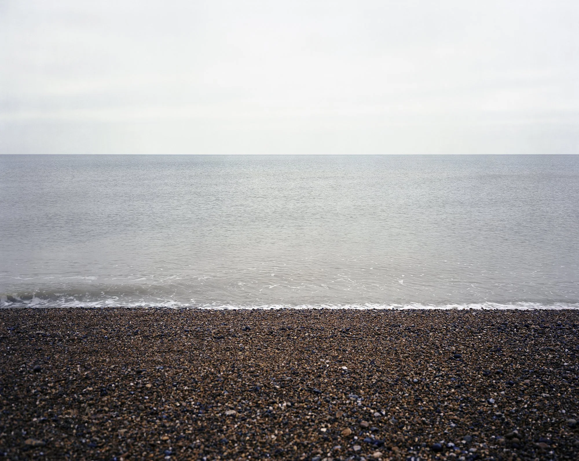 Mike Perry’s photographic series, Beach, records seashore scenes from an unassuming stretch of England’s South Coast. These images depict neither moments of extreme drama or beauty but do seek a resolutely objective take on the surface of the beach which is being photographed. His interest lies in depicting the surface detail of the landscape, focusing attention on the stones, sand, waves, sky and light. This exhibition will be the first major exhibition of Mike Perry’s work in a public gallery in the UK.