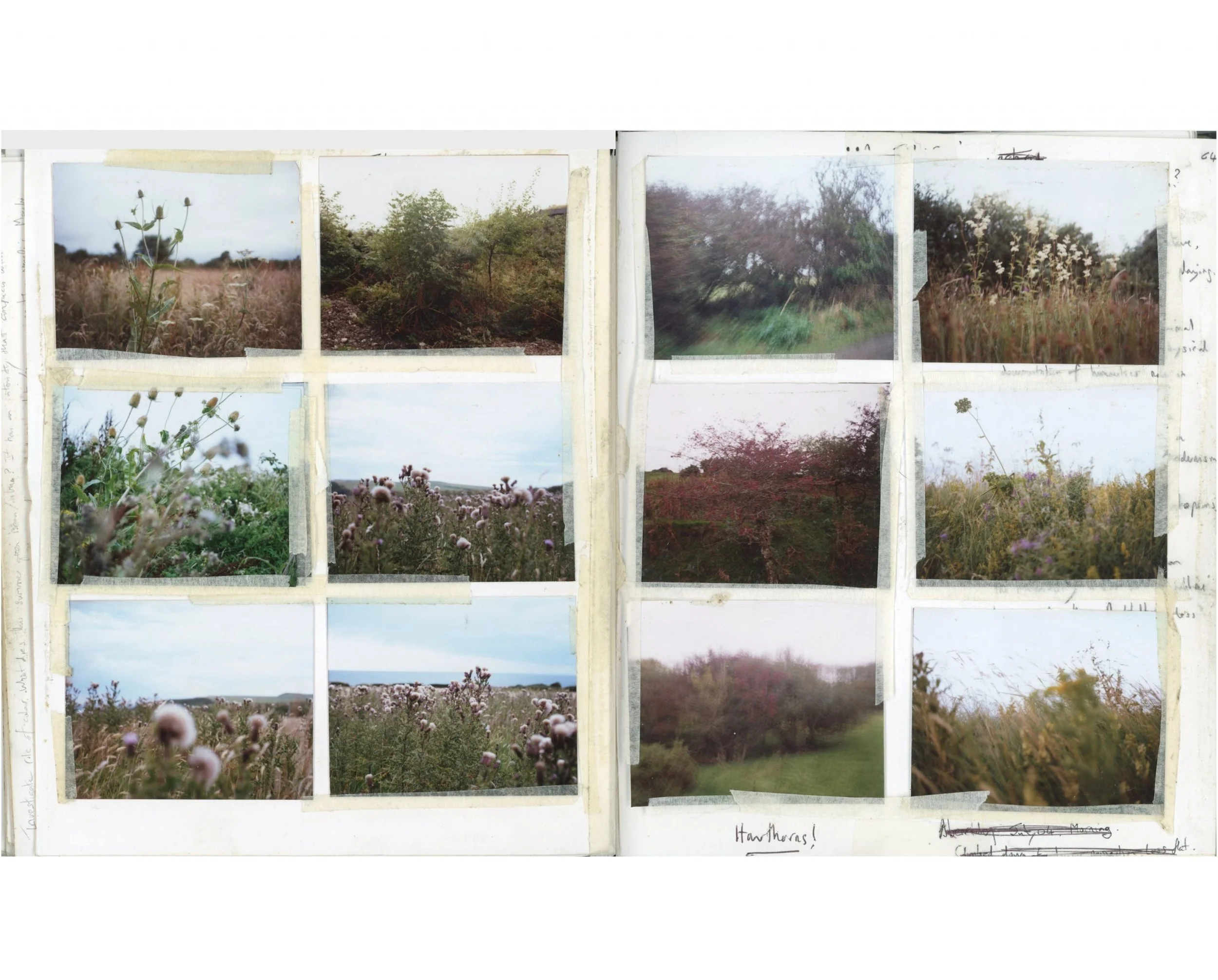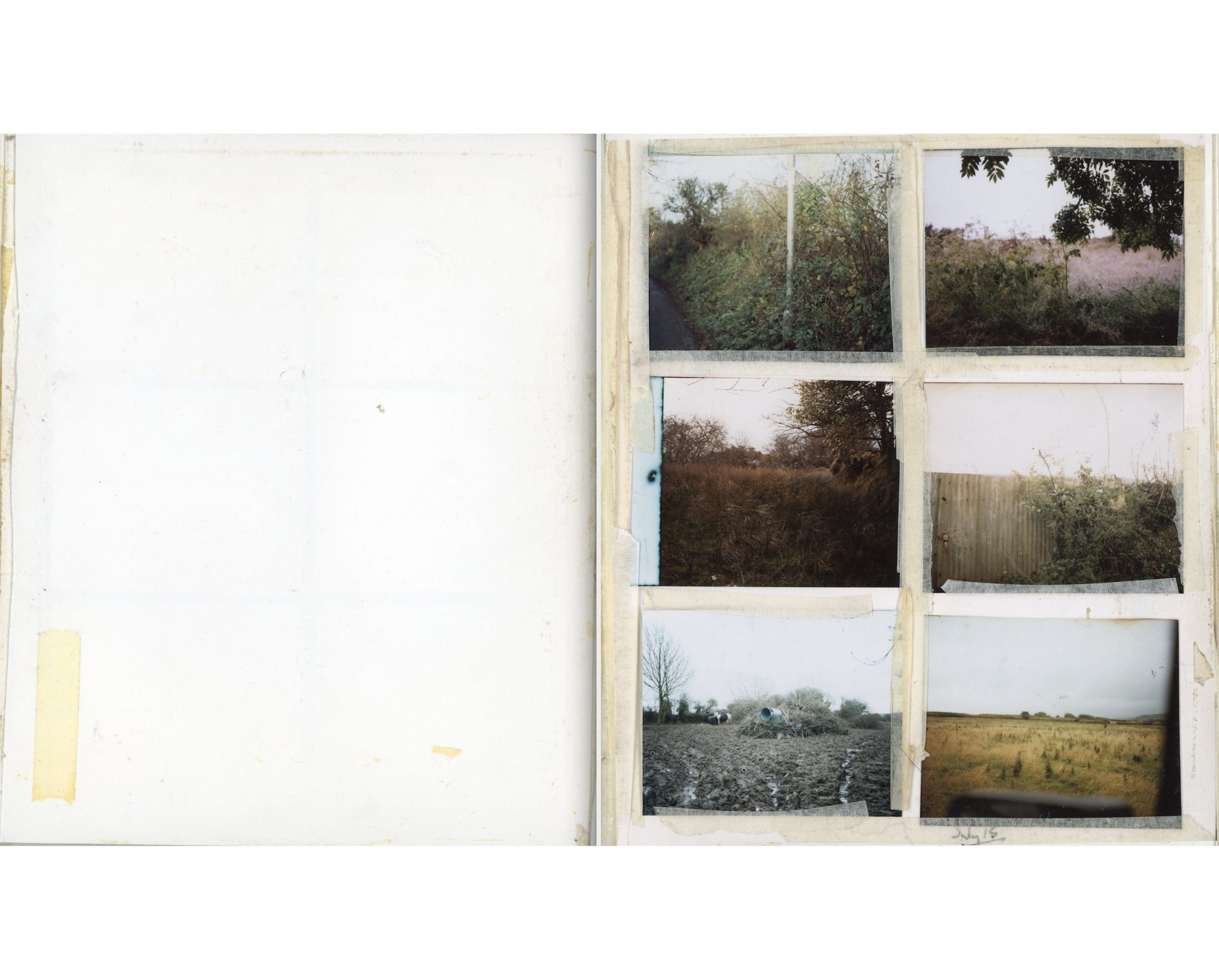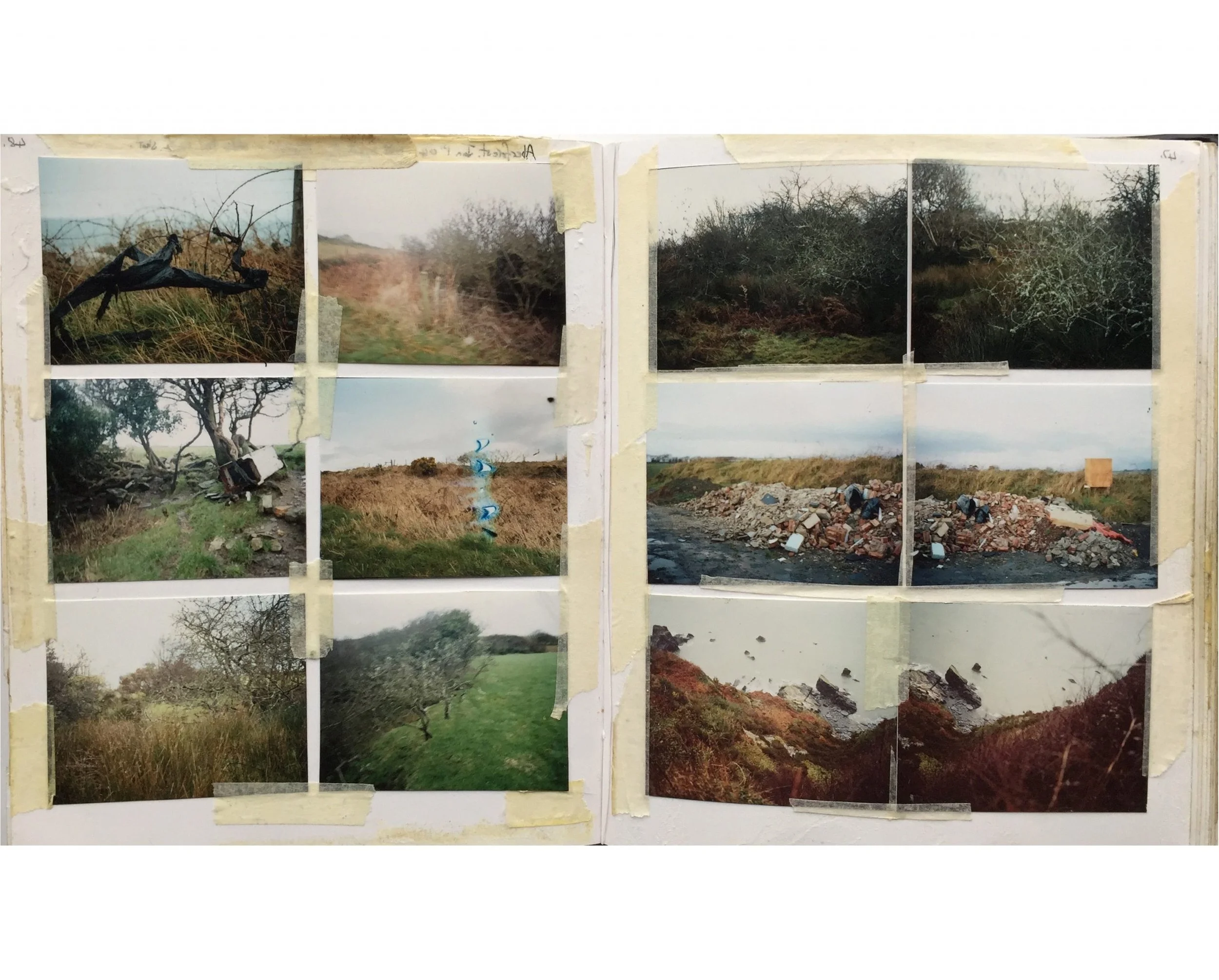 The loose grids of images reflect my interest in the idea of the ‘atlas’ and the way artists have represented and mapped the landscape in non linear unscientific formats. Olafur Eliasson’s photographs of Iceland, Gerhard Richter’s Atlas and Robert Frank’s Moving Out have all in their own ways been an influence. Perhaps I’m creating my own relationship to time and place and my own form of pseudo scientific study of a place. This ‘arrangement’ of nature creates a personal and maybe a strange knowledge of place. A boggy field or scruffy hedgerow is sufficient for me if the light and colours feel right. It’s ‘the rags and bones’ of the landscape as opposed to the drama and advertised beauty of the National Park that interest’s me. I like the idea of exploring the richness of this wet and boggy landscape. Of finding aesthetic sufficiency where you live, without having to travel to new and dramatic locations.