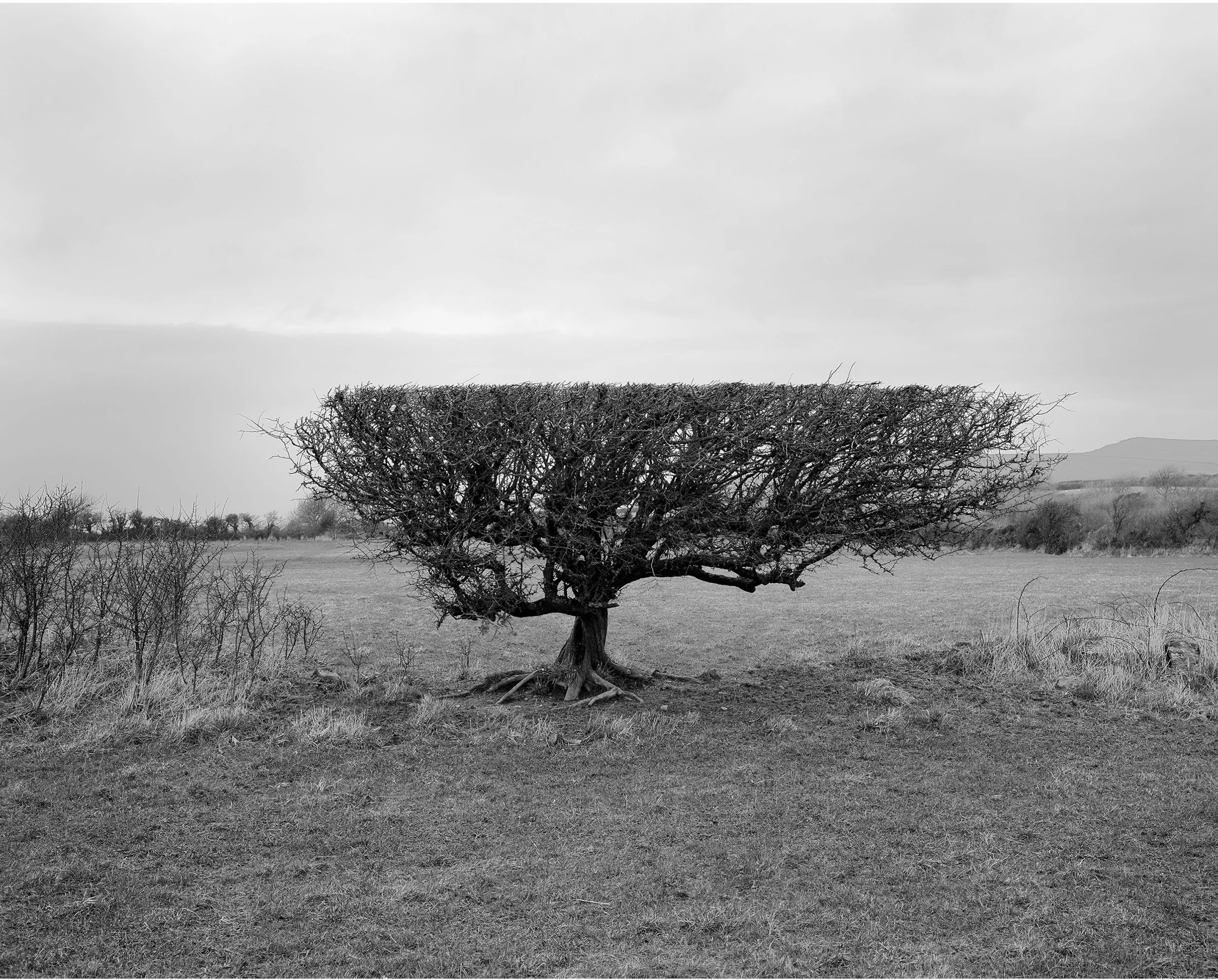I photographed the Hawthorns to leave a record of this landscape and presented them in a grid to emphasise their wild sculptural forms. Just as the Bechers wanted their work to encourage the preservation of industrial relics, I’m keen to record our natural living architecture whilst it still exists. It’s as much a topographical inventory as it is a pictorial document. I also made a grid of sixteen wild willow trees that thrive in the wetter parts of the lower fields. Something attracts me to these sensuous delicate leaved bog lovers. Maybe it’s because they are regarded as ‘weeds’ by many farmers, or maybe it’s their pale green semi symmetrical round forms that appeal to my minimalist tendencies.